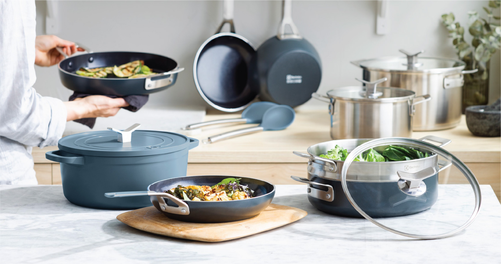 A healthy, home-cooked meal starts with impeccable cookware. The Electrolux cookware collection features a varied and complete range of cookware items: from PFAS-free ceramic non-stick fryware to stainless steel casseroles in different sizes that will fullfil all your needs. Frying, cooking, steaming, grilling: the possibilities are endless. Due to its functional design and high-quality materials, cooking with the Electrolux cookware ensures effortless & enriching cooking fun.